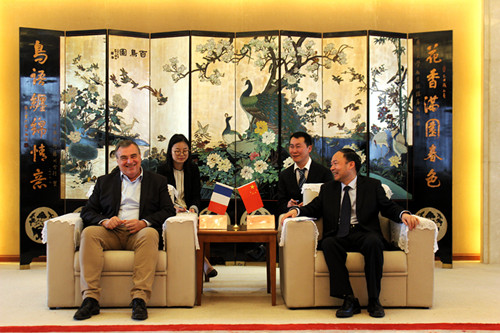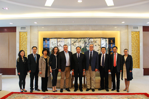 4月20日,校长焦新安会见由国会议员、奥尔良大都市主席、奥尔良市市长Olivier Carré为团长的法国奥尔良市代表团一行。