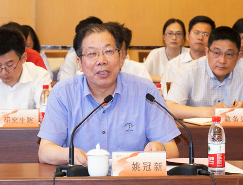 姚冠新在汇报会上致辞,对教育部长期以来对学校创新创业工作给予的指导和支持表示感谢,并向专家组全面介绍了学校的历史沿革和事业发展情况。在听取专家组的反馈意见后,姚冠新表示,下一阶段,学校将重点从优化顶层设计、革新方法举措、完善工作保障等三个方面,进一步推进创新创业教育工作。他要求学校相关部门,要以此次专家组实地调研为契机,充分吸收专家们的建议和意见,认真总结宣传、积极推广实施、对照检查改进,以更加积极的态度、更加宽广的思路、更加扎实的行动,持续推动学校创新创业教育工作取得更大实效。