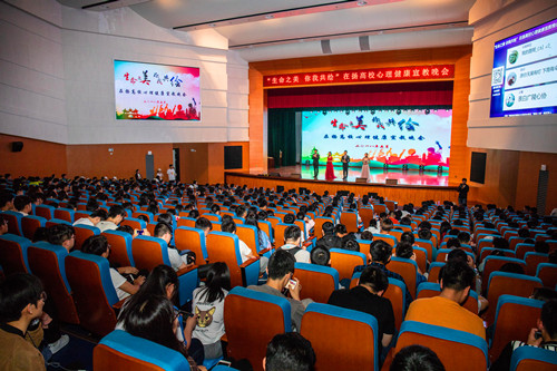 在扬各高校于2017年12月成立“朋辈成长联盟”,旨在共享资源、共聚力量,引导广大学生珍爱生命,关爱自我,塑造积极乐观的阳光心态。本次晚会由“在扬高校大学生朋辈成长联盟”承办,各高校学生处处长、心理中心主任及学生代表700余人观看演出。