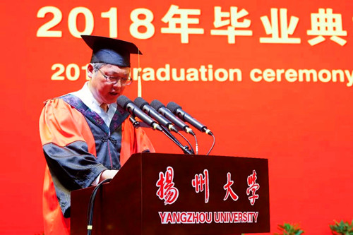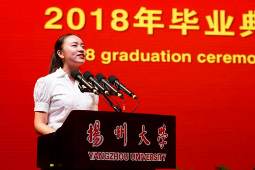 毕业生代表、园植学院赵好好同学回顾了在扬大的四年求学生涯,感动于生活中的小确幸,并向母校和同学们寄予最深切的祝福。