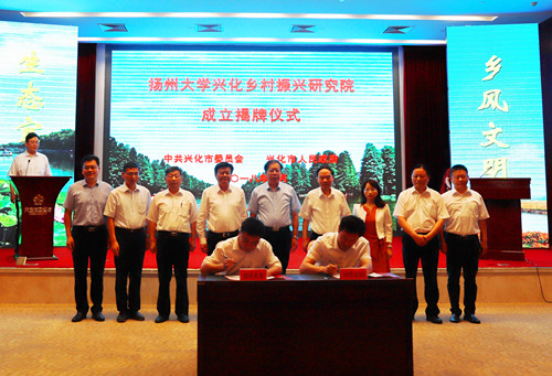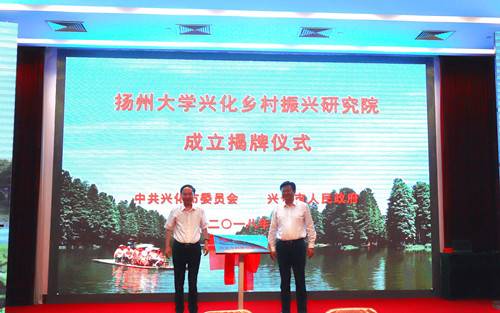6月28日上午,扬州大学兴化乡村振兴研究院签约暨揭牌仪式在兴化市举行。校党委书记姚冠新出席仪式并讲话,校长焦新安、兴化市委书记李卫国共同为研究院揭牌,副校长黄建晔、兴化市委副书记葛志晖分别代表学校与兴化市签署共建扬州大学兴化乡村振兴研究院合作协议书。中国工程院院士张洪程、农业农村部经济研究中心市场与贸易研究室主任翟雪玲,兴化市委常委、组织部部长常冬海,副市长沈德才、周斌等出席活动。