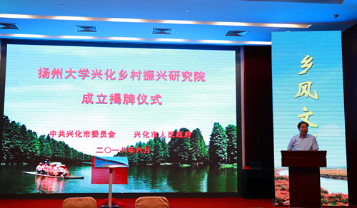 姚冠新在讲话中指出,一个地区的经济社会发展离不开高校的智力支撑,而高校要建成高水平大学同样需要地方政府和企业的大力支持。他说,长期以来,扬州大学和兴化一直有着深厚的渊源,保持着紧密而务实的合作,双方有着鲜明的地缘、人缘和产业契合度。扬州大学兴化乡村振兴研究院的成立,标志着双方在共同推进乡村振兴战略中又孕育出一个新机会、新力量、新平台。姚冠新希望校地双方精诚协作、精确定位、精准对接、精细实施,进一步整合政、校、企三方优势资源,开展全方位、多形式、有实效的深度合作,共同打造一个有影响、有价值、有示范性的市校合作“兴化样本”。