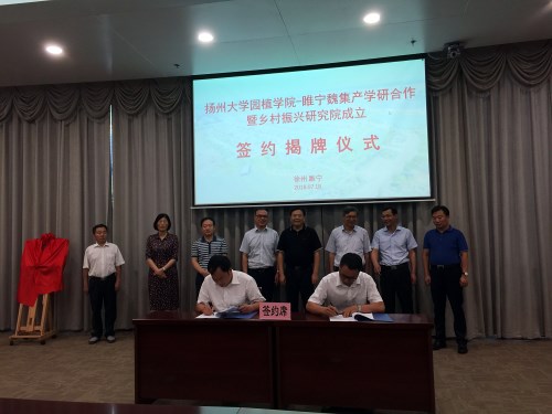 7月18日,园植学院与徐州市睢宁县魏集镇签约,成立乡村振兴研究院,开展产学研合作活动。校党委副书记、副校长刘祖汉出席活动并讲话。睢宁县委书记贾兴民、副书记王敏出席活动。