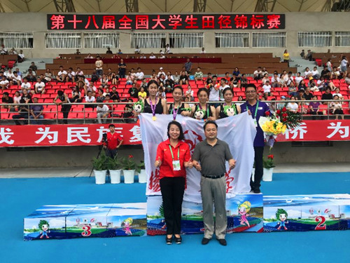7月15日至20日,第十八届全国大学生田径锦标赛在黑龙江八一农垦大学举行。来自全国各省、自治区、直辖市、香港特别行政区的190所高校、1800余名运动员,同场竞技、激烈角逐。我校派出了9名运动员参加高水平甲A组比赛,斩获5金、2银的好成绩。金牌总数位列全国第三,江苏第一,并荣获“体育道德风尚”荣誉称号。