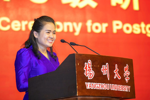 开学典礼上,导师代表、博士生导师高利增教授,老生代表、校研究生会主席叶蕴灵同学,新生代表、博士研究生龚志浩同学、老挝籍博士研究生冯菲莎同学先后发言。高利增教授在发言中劝勉全体研究生珍惜时间、积极主动、修身立德,不断攀登学术高峰。叶蕴灵同学从心态、学术、实践三个方面讲述了如何遇见更好的自己。龚志浩同学总结了自己的学习经验,并表示要追求卓越,创造属于自己的学问人生。冯菲莎同学简要回顾了中国与老挝、扬大与她的深厚渊源,并表示将以更加积极向上的状态融入她在扬州大学的科研生活。