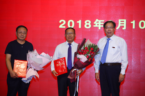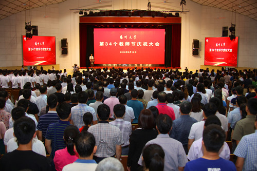 会议对我校一年来在教学、科研、管理、服务等工作中涌现出来的先进典型进行了集中表彰。大会还举行了新入职教师宣誓仪式,全体新入职教师在文学院姚文放教授的带领下,面向国旗庄严宣誓:“不忘初心、牢记使命,坚苦自立、博文约礼,厚德抱朴、弘道树人,争做党和人民满意的‘四有’好老师,为实现中华民族伟大复兴的‘中国梦’而不懈奋斗!”