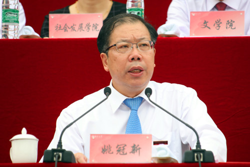 姚冠新强调,坚苦自立首在立志,根在立德,重在立学,旨在立功。他希望同学们志存高远、矢志不移、担当作为,主动做一个信念执着、意志坚强的人;坚持行之以德、求真向善,明大德、守公德、严私德,主动做一个率先崇德修身、引领社会高尚品德的人;博学笃行、实学研攻,主动做一个眼界开阔、思维活跃、知识丰富的人;正确处理好立大功与做小事的关系,厚植知识和才干,在实现青春梦想中,不断开拓人生和事业发展的新境界。他真诚祝愿同学们不负韶华、砥砺前行,在“坚苦自立”中问道大学之“大”,奋力书写幸福生活、辉煌事业和卓越人生的精彩华章。