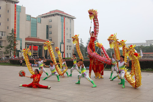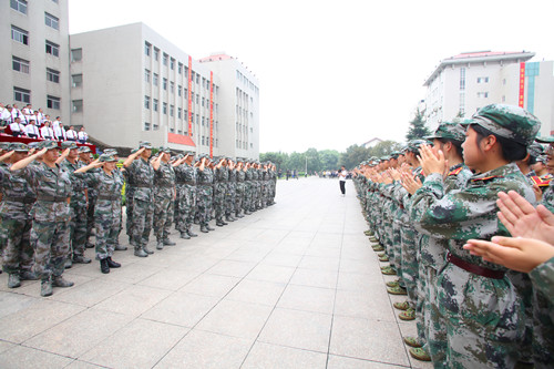 在随后举行的新生军训阅兵式上,29个学院的阅兵方队在校旗护卫队的引导下,步履矫健、精神饱满地依次通过主席台接受检阅,全场不时响起阵阵热烈的掌声。随后,受训新生还先后进行了舞龙灯、擒敌拳、战地救护、格斗术、太极拳等项目的表演。军训汇演结束后,在主席台前排就座的领导、嘉宾为在军训工作中表现优秀的学院颁奖。