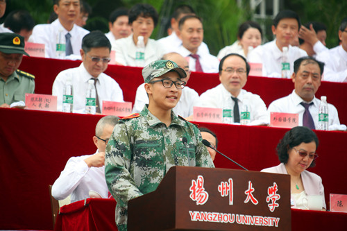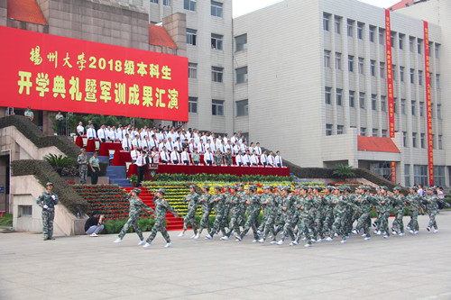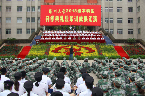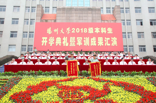 9月16日上午,荷花池校区主楼广场上洋溢着青春的朝气与激情,学校在此隆重举行2018级本科生开学典礼暨军训成果汇演。7054名新同学齐聚于此,共同见证他们成为扬大人的重要时刻。姚冠新、叶柏森、黄建晔、陈国宏、洪涛、俞洪亮、费坚等全体在扬校领导,军训承训部队、中国人民解放军73056部队部队长许浒大校,扬州军分区副司令员徐建松大校,扬州市消防支队支队长王志祥上校等出席典礼。校党委书记姚冠新在开学典礼上发表讲话。校党委副书记叶柏森主持典礼。