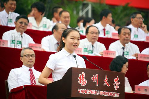 开学典礼上,教师代表、农学院张韬教授,校友代表、国家杰出青年科学基金获得者、中国科学院上海生命科学研究院生物化学与细胞生物学研究所李劲松研究员,老生代表、校学生会主席钟莹同学,新生代表、机械工程学院虞宇浩同学先后发言。张韬在发言中指出,真正的探索之旅并不在于寻找新的风景,而是要有新的眼光。他希望广大新生好好了解、认识自己所学的专业,努力培养兴趣,干一行、爱一行、争做第一,勉励大家要敢于有梦、勇于追梦、勤于圆梦。李劲松在发言中以自己的切身经历为例,告诫大家在人生的不同阶段都需要有明确的目标,勉励新生将大学生活过到“极致”,要心存梦想、要脚踏实地,要以德为本、实现合作共赢。钟莹与学弟学妹们分享了自己的大学生活经验与体会,祝愿广大新生在四年追梦之旅中,用激情和汗水去书写无悔青春。虞宇浩代表全体新同学表示,在新的人生起点上,要立鸿鹄志、做奋斗者,要求真学问、练真本领,要知行合一、做实干家,在大学谱写最美的青春华章。