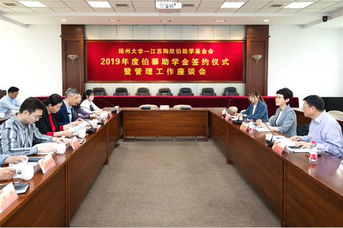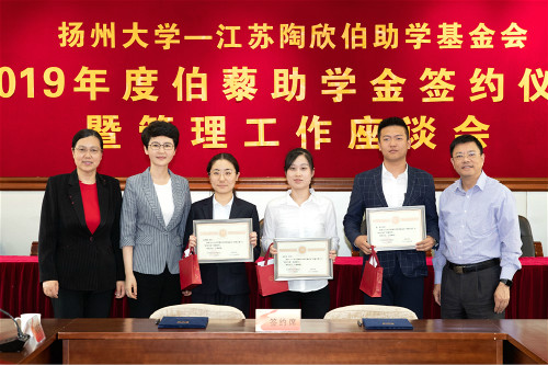 5月10日,2019年度伯藜助学金签约仪式在荷花池校区行政楼一楼报告厅举行。校基金会理事长陈耀,江苏陶欣伯助学基金会理事长李建伟、秘书长张利伟等出席活动。