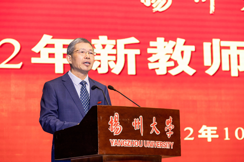 10月24日下午,学校在荷花池校区大学生活动中心三楼小剧场隆重举行2022年新教师入职宣誓仪式暨岗前培训主题报告会。校党委书记焦新安出席会议并讲话,校长丁建宁为全体新入职教师作岗前培训主题报告。校党委副书记周如军主持会议。