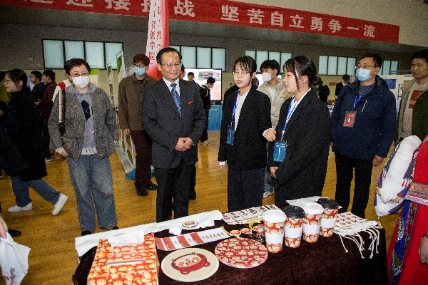 开幕式后,与会领导与嘉宾共同参观了大学生课外学术科技作品展,并与参赛学生和指导教师深入交流。