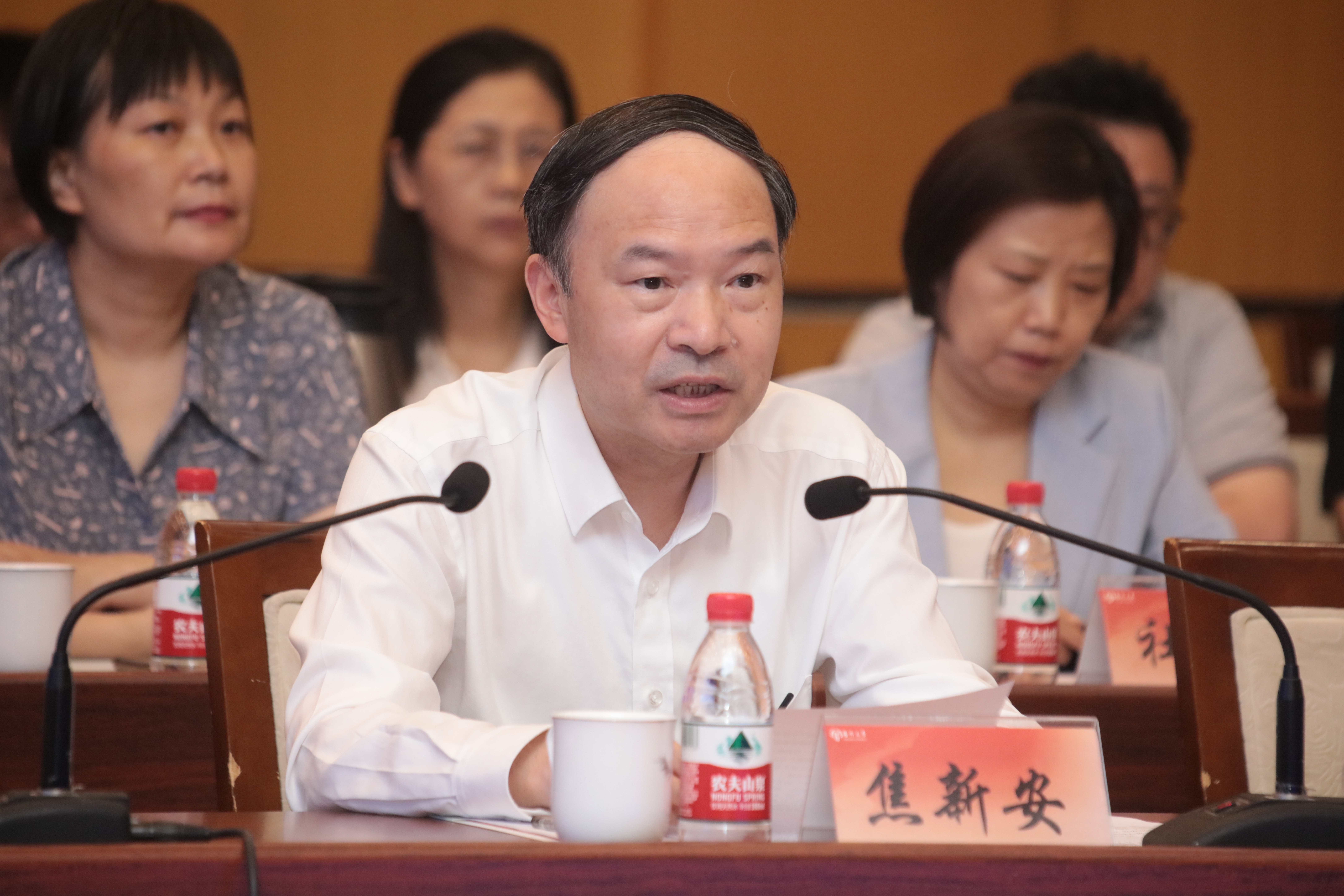 焦新安代表学校对万建民院士一行来访表示热烈欢迎,并详细介绍了学校历史沿革、办学质态与事业发展成效。他表示,建设好生物育种钟山实验室是贯彻落实习近平总书记重要指示精神,打好种业翻身仗实现种业科技自立自强、种源自主可控的重大政治任务。学校将主动作为,坚持以国家战略需求为导向,充分发挥扬州大学的学科优势,延展种业创新链,服务种业产业链,与共建单位在团队共组、平台共建、智库联动、成果联合推广上形成合力,共同把生物育种钟山实验室打造为长三角乃至全国一流、国际知名的重点实验室,以突破种业安全、攻克生物育种关键核心技术、解决种业重大科技问题为使命,共同把生物育种钟山实验室打造为国际一流的种业创新、人才培养和产业引领的创新基地。